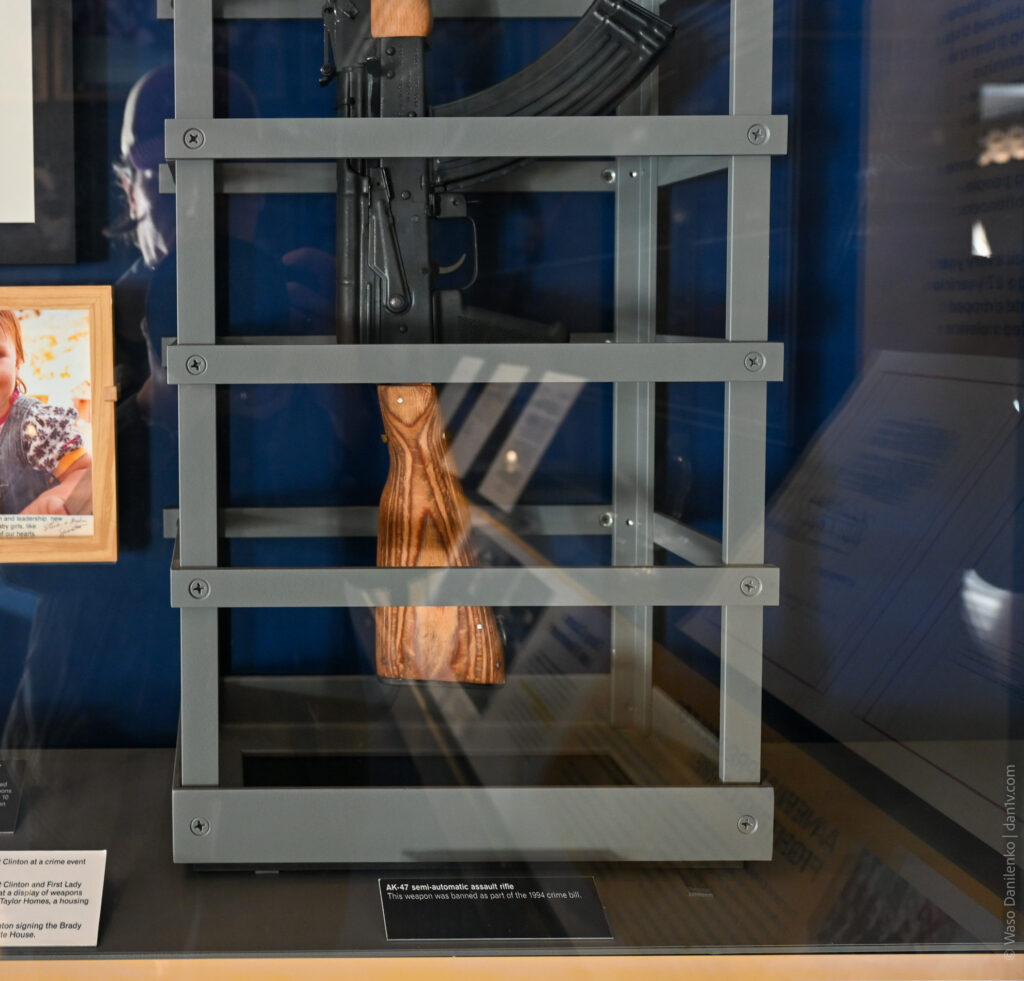Фото с Автоматом Калашникова (АК-47), который оказался под запретом после принятия закона о преступности 1994 года (Violent Crime Control and Law Enforcement Act), целью которого было ужесточить борьбу с насилием и вложиться в обеспечение правопорядка. Закон стал самым крупным криминальным законом в истории страны на тот момент.