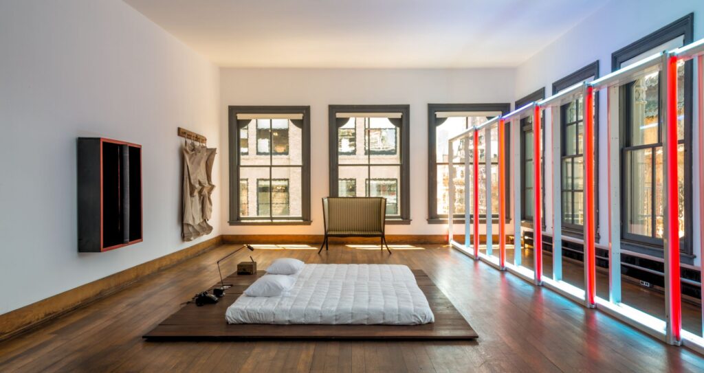 Адрес 101 Spring Street — культовое место для любителей минимализма. Дональд Джадд (Donald Judd) купил это пятиэтажное литое здание в 1968 году, превратив его в жилое пространство и выставку собственных работ и произведений друзей — Дэна Флавина и Фрэнка Стеллы.