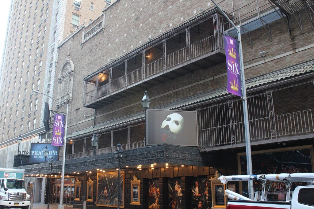Крупнейший бродвейский театр (1,800 мест). Здесь 35 лет шел «Призрак Оперы» — и именно этот зал был спроектирован так, чтобы знаменитая люстра могла «упасть» на зрителей.