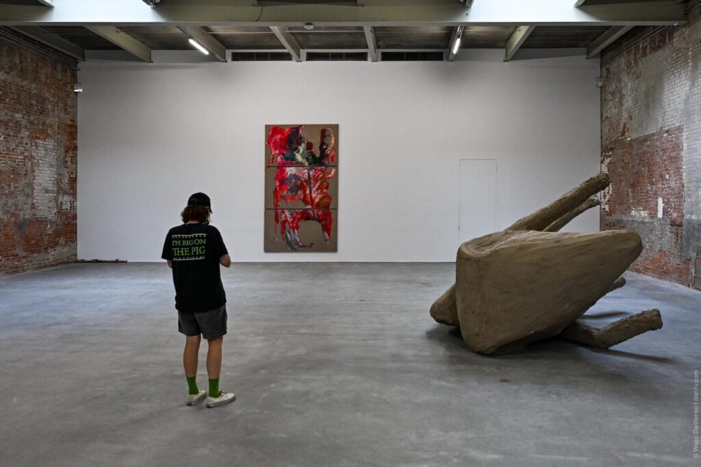 В центре выставки — семь крупных скульптур бизонов, представленных в разных позах: будто животные ложатся, перекатываются в пыли. Эти мягкие, но мощные движения — не просто визуальный мотив. Как отмечает куратор, они веками формировали ландшафт Северной Америки, превращая землю, воздух и свет в живое пространство.