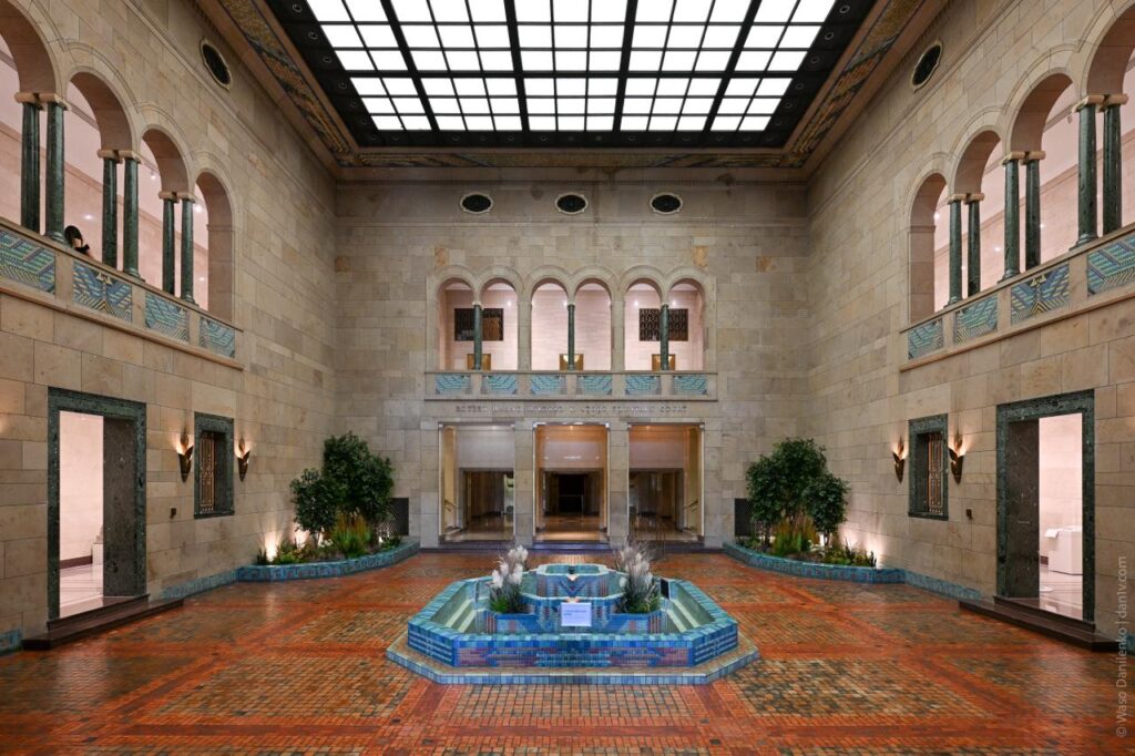 - Оригинальное 1931 года выглядит как настоящий дворец и в 1938 году было включено в список 100 лучших зданий страны (ну еще бы, архитекторами были сами бессмертные Макдональды). Оно облицовано розовым мрамором из штата Джорджия (Georgia Pink Marble), а в интерьерах использованы 38 видов мрамора со всего мира, включая камень из Европы и Африки.