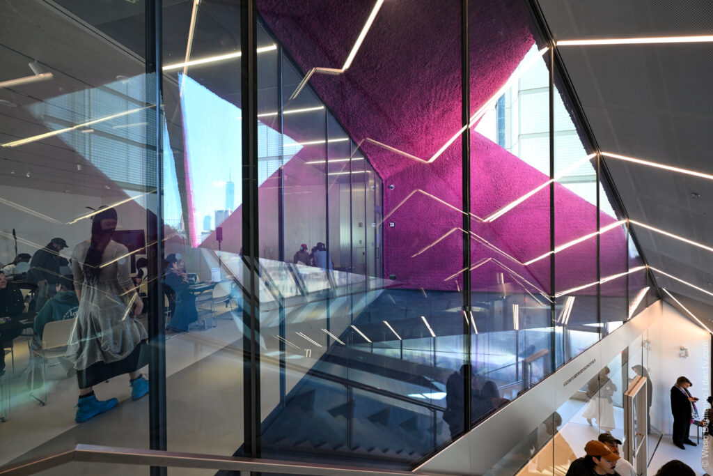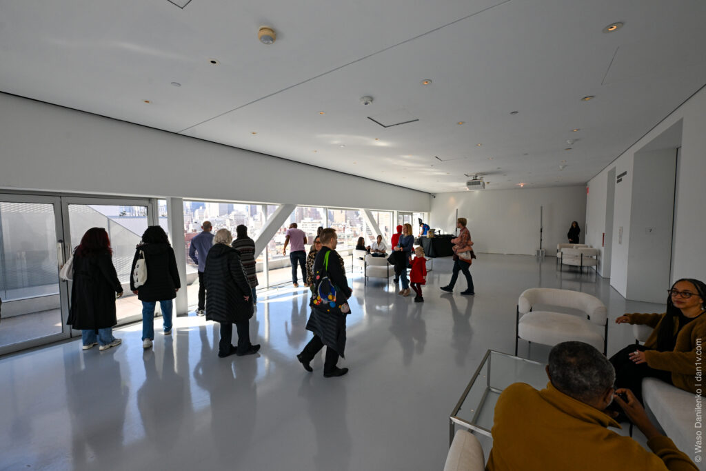 На верхних этажах — студии художников-резидентов и расширенный Sky Room — комната с красивым видом на скайлайн Нью-Йорка.