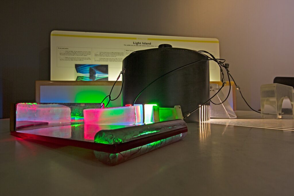 Экспонаты по темам биологии, химии и физики. Концепция музея строится вокруг подхода «Проектируй, Создавай, Играй» (Design, Make, Play). Здесь не читают таблички, а трогают, крутят, строят и проверяют гипотезы. Большой зал разделен на несколько зон: