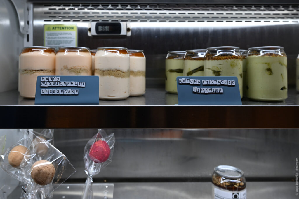 Место оказалось небольшим, светлым и очень приятным — с фокусом на спешелти-кофе и матча-напитках. Но главное, что меня сразу зацепило — десерты в стеклянных баночках. Идеальный формат grab & go: красиво, удобно, вкусно.