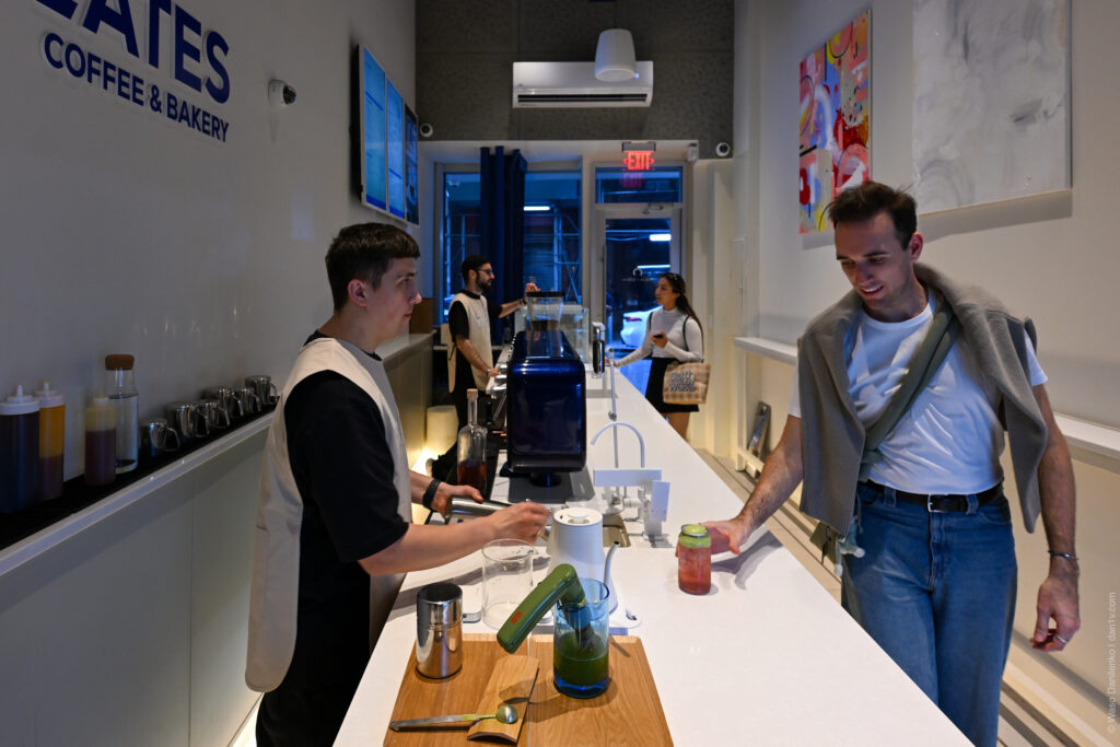 Когда я достал камеру, чтобы снять место, оказалось, что ребята за стойкой говорят по-русски. Три основателя из стран бывшего СНГ — каждый пришёл из своей сферы: онлайн-ритейла, бизнеса и медицины. Вместе они создали кофейный бренд, где скорость, дизайн и качество соединяются в одном цельном опыте.