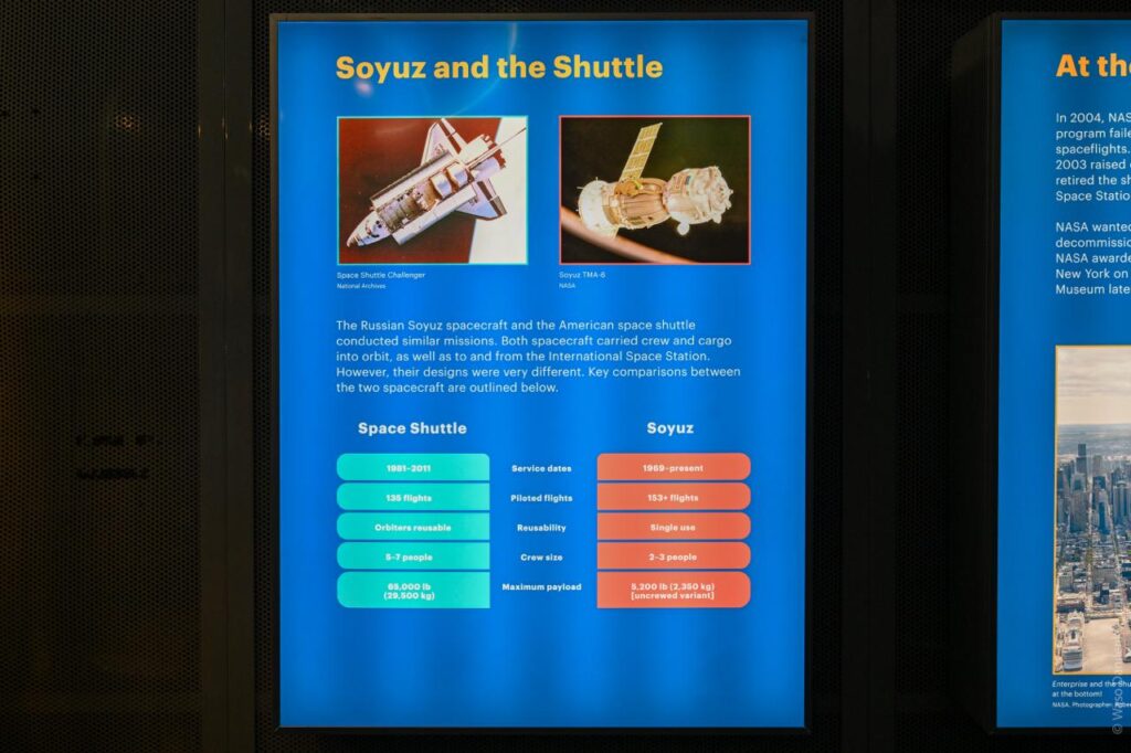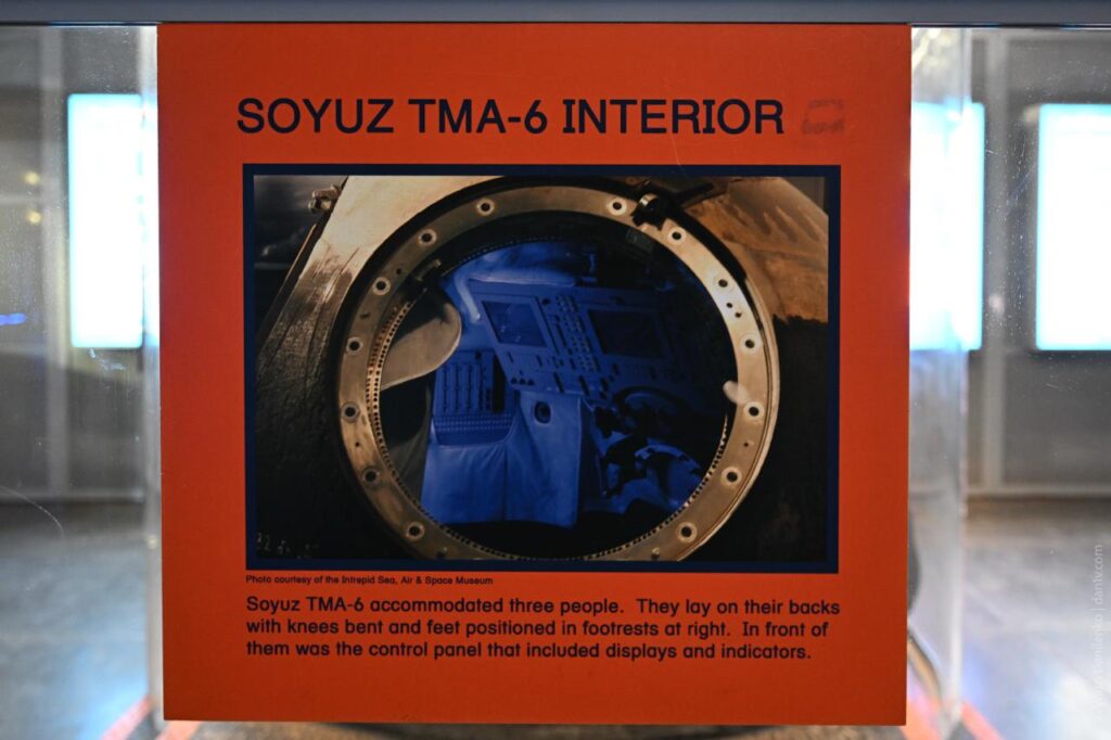 На модуль Союз ТМА-6 можно посмотреть в том же павильоне, где демонстрируется шаттл Enterprise, который, в отличие от Союза, в космос не летал, зато летал над Нью-Йорком.