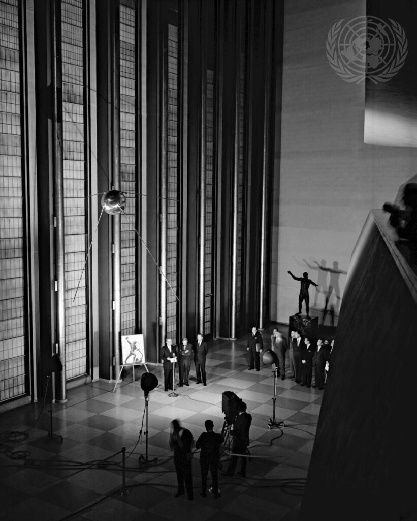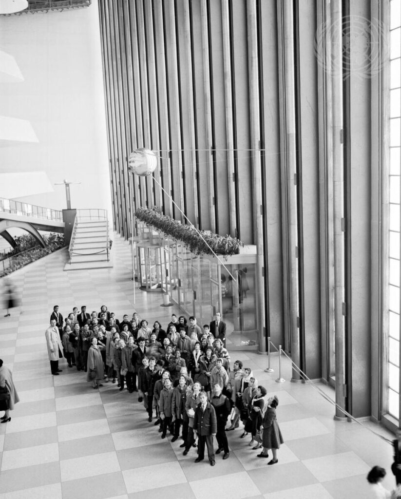 Нью-Йорк, конечно, бесконечный город для любопытного человека. Ну где еще можно пойти на экскурсию по ООН и увидеть Спутник в фойе? Речь про полноразмерную модель первого искусственного спутника Земли. Она подвешена под потолком в общественном вестибюле главного здания ООН.