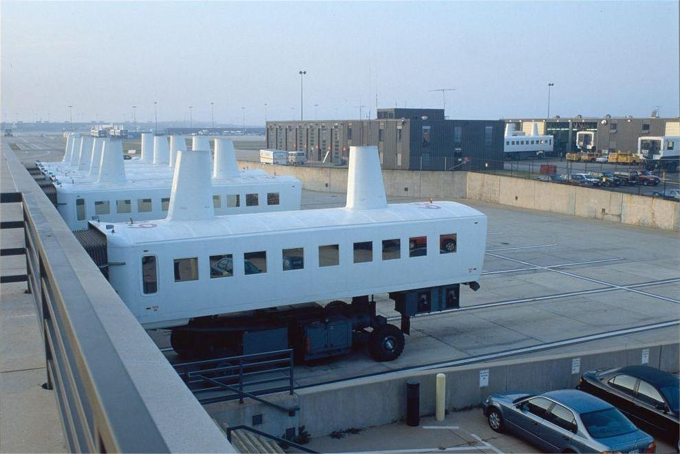 Mobile Lounges начали обслуживать пассажиров в 1962 году (и делают это до сих пор!), а Plane Mates появились в 1971 году, их всего около 30 штук, и они тоже работают до сих пор.