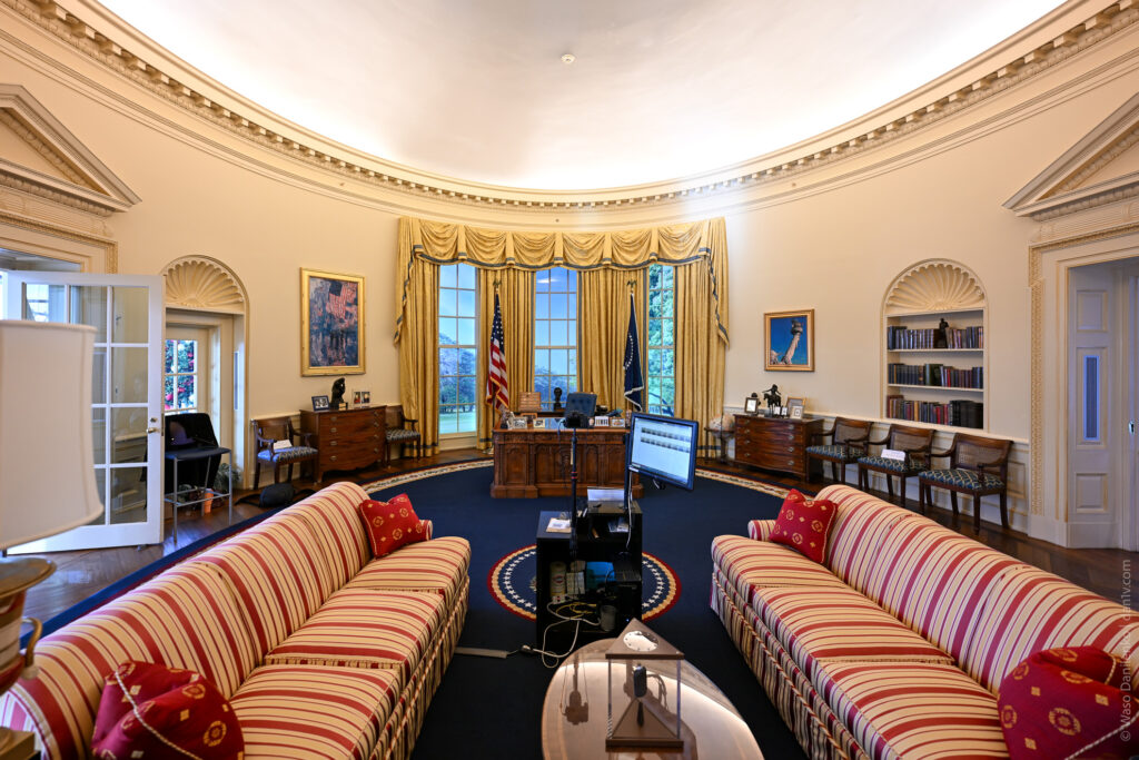Полноразмерный Овальный кабинет Белого дома с возможностью сделать фото за тем самым столом.