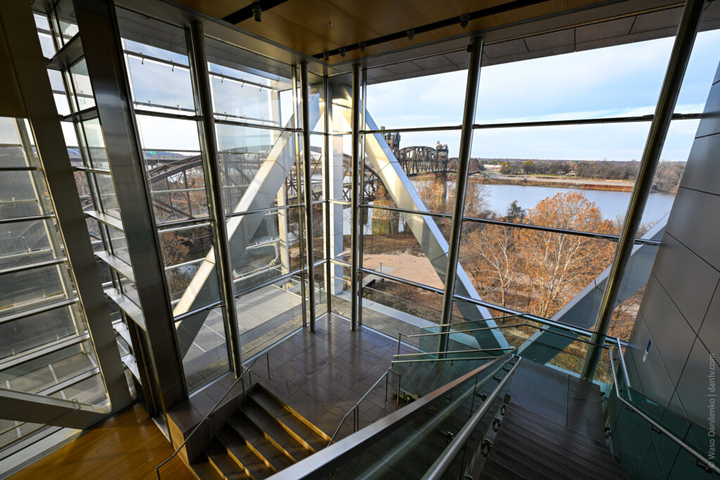 Еще одной особенностью здания является отсылка к форме моста: Центр Клинтона находится у реки Арканзас, одного из крупнейших притоков реки Миссисипи.