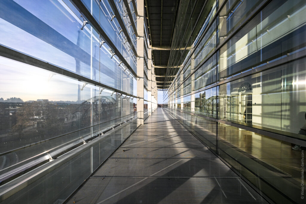 Пешеходные галереи-балконы с видами на парк и реку. Мы особенно рекомендуем подгадать время прогулки ближе к закату, в золотой час фасады переливаются необыкновенными красками.